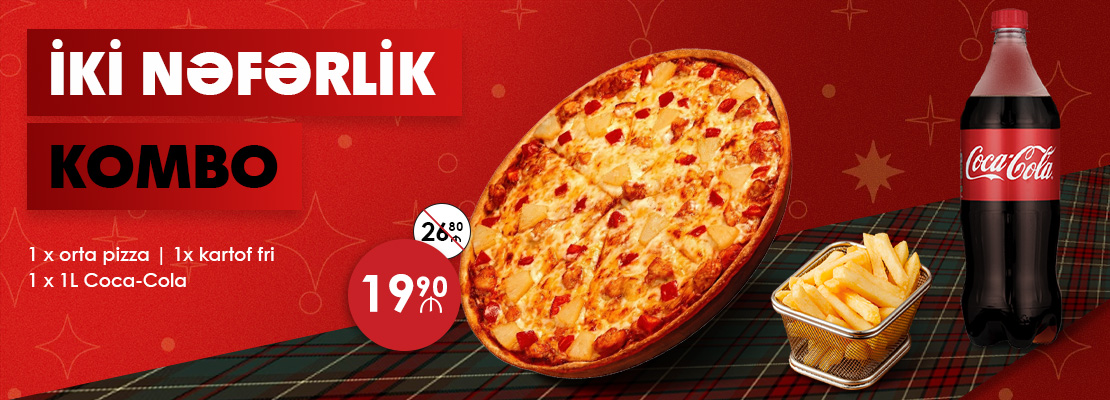 Pizza sous, gouda pendiri, toyuq filesi, dana basdırması, salyami kolbasası (halal), mal ətindən vetçina (halal), pepperoni