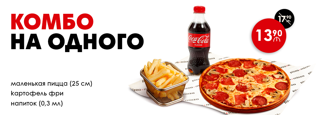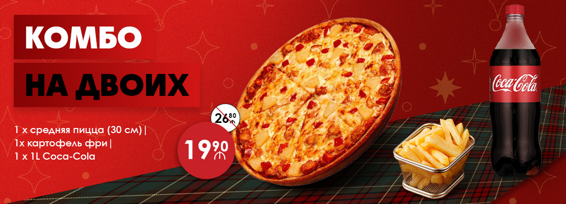 Большая пицца, смешанные панини (6 штук), наггетсы (6 штук), картофель фри, Coca-Cola 1Л